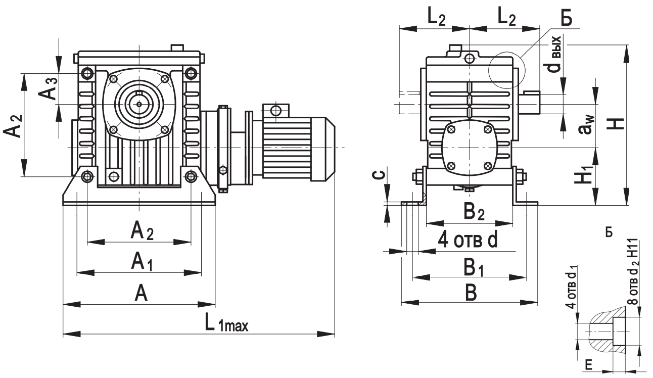 Габаритные размеры редуктора на лапах