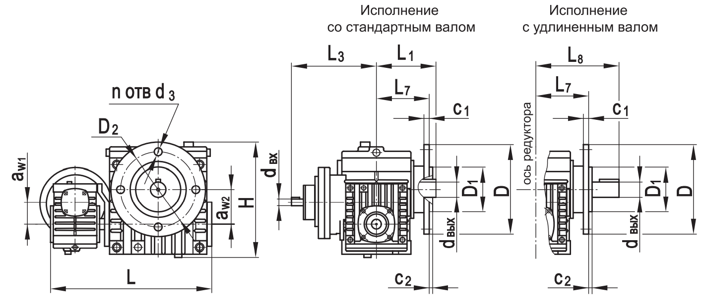 Типоразмер аW1 аW2 А А1 А2 А3 В В1 В2 L* L1* L2max L3* L4 Н Н1 с  d d 1 d2 Е dвх dвых