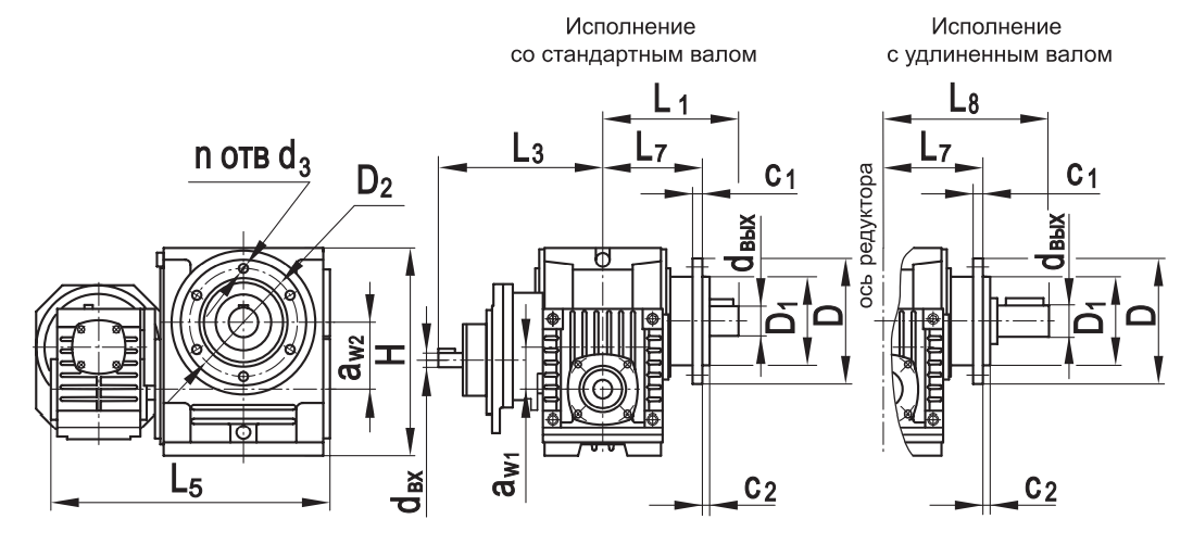 Типоразмер аW1 аW2 D D1 D2 H L* L1 L2max L3* L7 L8*с 1 с2 d1 dвх dвых n
